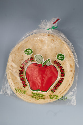 10 tortillas de harina miden aproximadamente 9 pulgadas